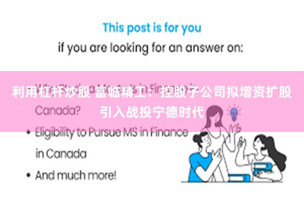 利用杠杆炒股 富临精工:控股子公司拟增资扩股引入战投宁德时代